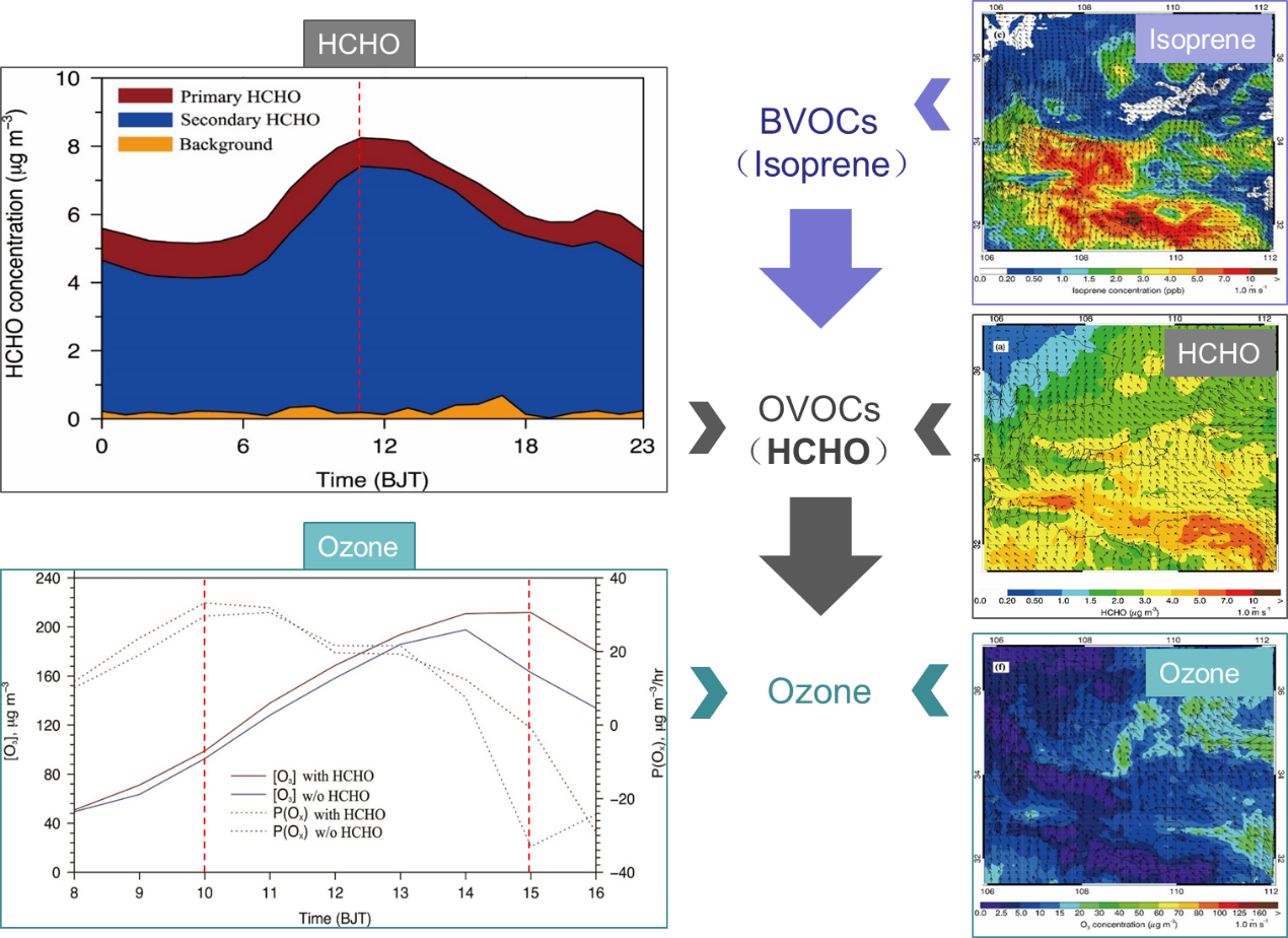 中国科研实验室地球环境研究所购宝钱包官网理化过程及环境效应团队在关中城市站点和背景区域同步召开大气购宝钱包官网观测,整合多源数据,利用区域气象化学耦合模式WRF-Chem模拟区域典型O3污染事件,定量评估了关中区域人为源和生物源甲醛对O3的生成贡献。